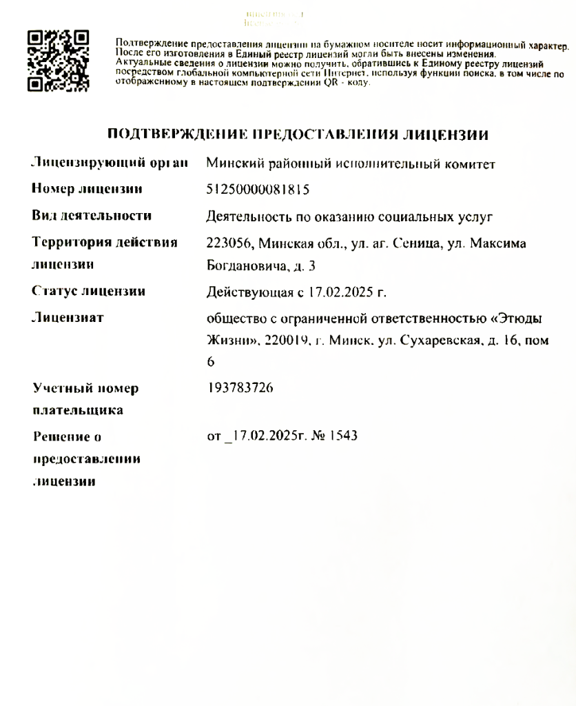 Наша деятельность официально сертифицирована. Мы имеем действующую лицензию, подтверждающую наш профессиональный статус и право оказывать услуги в данной сфере. Мы строго соблюдаем законодательство Республики Беларусь и гарантируем клиентам безопасность, качество и прозрачность сотрудничества.